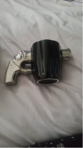 Nej, på grund af de metalfinish er det ikke anbefalet at bruge denne kop i mikrobølgeovnen.