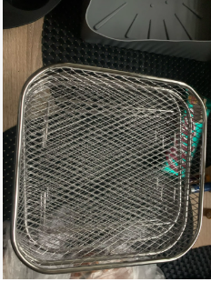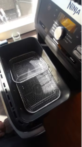 Jag börjar med luftfritösen, och det är mycket enklare med dessa korgar. Inga krossade livsmedel!